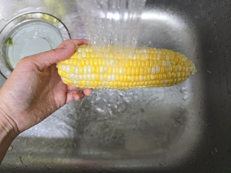 초당옥수수의 남은 껍질을 벗긴 후 물로 씻어주세요. 전자레인지용 그릇이나 비닐에 넣고 3분만 돌려주면 아삭아삭한 초당옥수수 찌기 완성입니다.