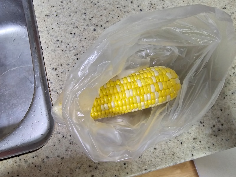 껍질을 벗긴 초당옥수수는 하나씩 키친타올로 감싸서 지퍼팩에 담아주세요.