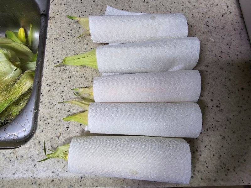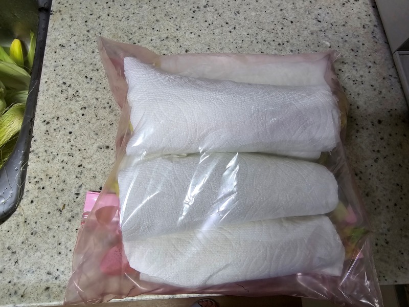 껍질을 벗긴 초당옥수수는 하나씩 키친타올로 감싸서 지퍼팩에 담아주세요.